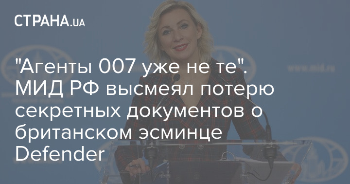 Официальный представитель министерства иностранных дел России Мария Захарова высмеяла инцидент с обнаружением возле автобусной остановки секретных документов об операции британского эсминца Defender в водах Крыма. Она заявила, что "агенты 007 уже не те".