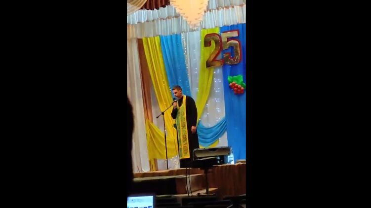 "Что такое? Что за культура? Я вам скажу, что за культура! Это я переживаю за Украину. А вы все тут хопаете этим всем попам-сепаратистам, понятно? Я вам правду говорю. Я больше ни на какие мероприятия не приду. Потому что тут г@вно сидит. Слава Украине - г@вно России", - заявил священник.