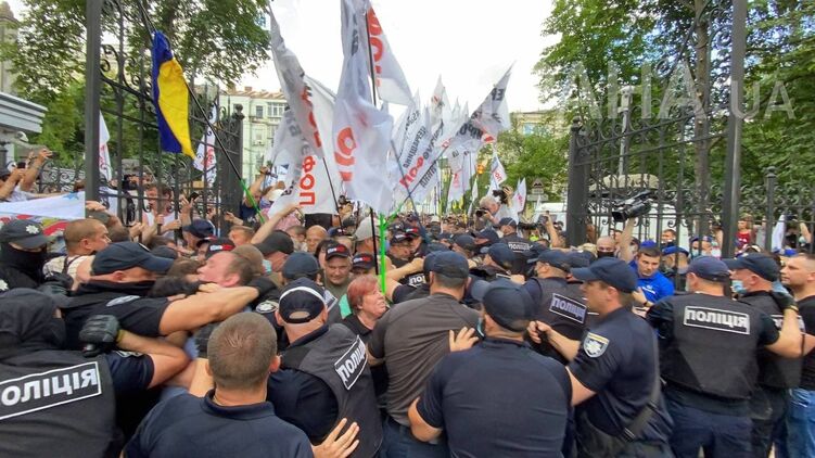 После нескольких минут столкновений правоохранители начали пропускать участников акции ФОПов на площадь перед Офисом президента.