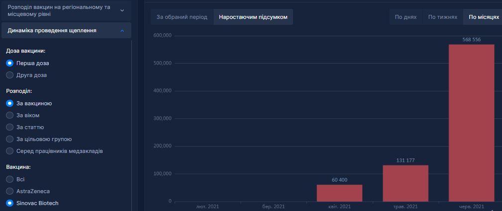 Сколько украинцев привились одной дозой "Коронавака". Данные с сайта СНБО