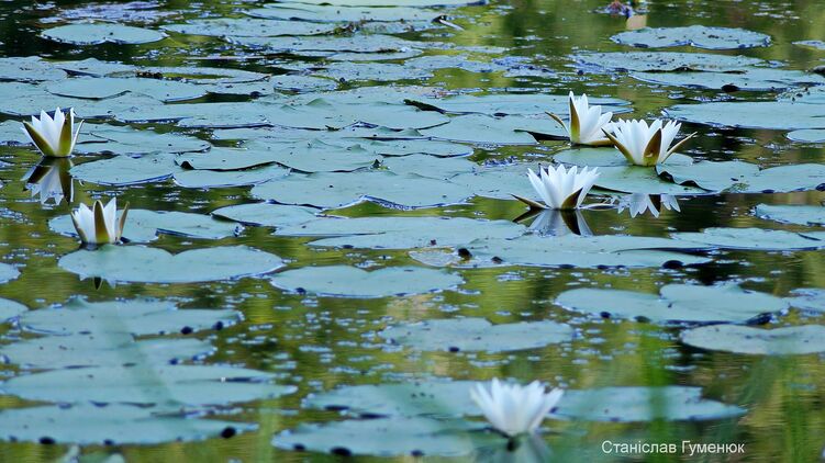В Чернобыльском радиационно-экологическом биосферном заповеднике зацвели белые кувшинки и выросли водяные линии. Кувшинки предпочитают  стоячие водоемы или водоемы с медленным течением.