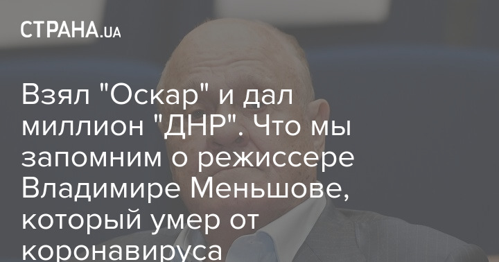 Владимир Меньшов считается в нынешней Украине "врагом государства", и с 2017 года занесен на сайт "Миротворец". Который сегодня цинично написал, что режиссер "ликвидирован коронавирусом".