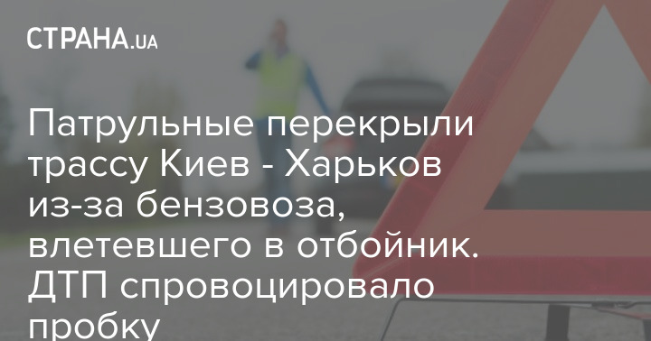 Патрульные перекрыли трассу Киев - Харьков из-за бензовоза, влетевшего в отбойник. ДТП спровоцировало пробку