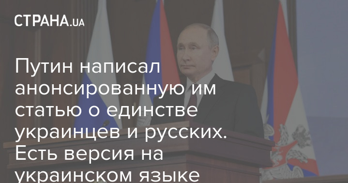 Путин написал анонсированную им статью о единстве украинцев и русских. Есть версия на украинском языке