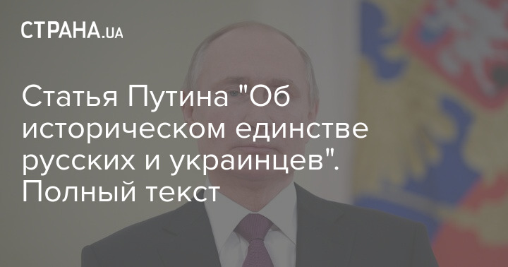 Статья Путина "Об историческом единстве русских и украинцев". Полный текст