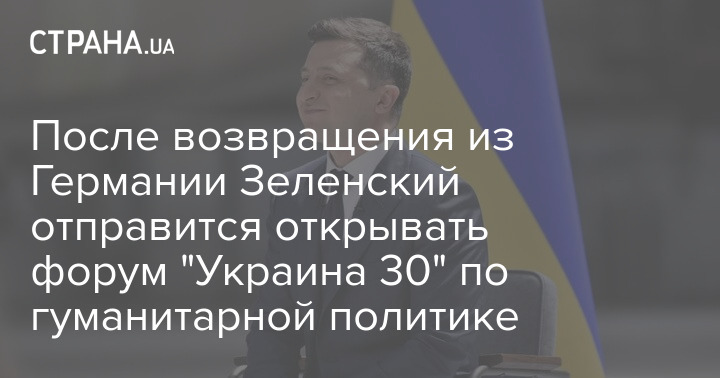 Президент Владимир Зеленский, который сейчас еще находится с рабочим визитом в Германии, во вторник, 13 июля, выступит на очередном всеукраинском форуме "Украина 30". Глава государства откроет мероприятие. Его выступление продлится десять минут - с 11:00 до 11:10.