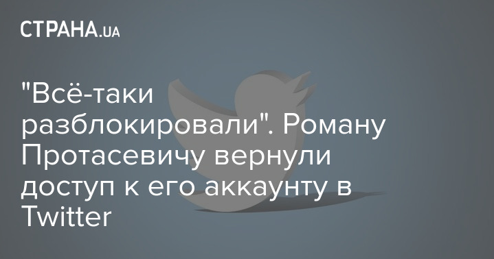 Находящийся под домашним арестом белорусский оппозиционер Роман Протасевич, чей Twitter-аккаунт заблокировали сегодня утром, сообщил о его разблокировке.