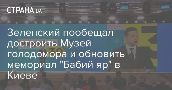 Президент Украины Владимир Зеленский заявил, что 90 годовщине Голодомора достроят национальный музей "Мемориал жертв голодоморов". Кроме того, по словам главы государства, будет обновлен и мемориал "Бабьего яра".