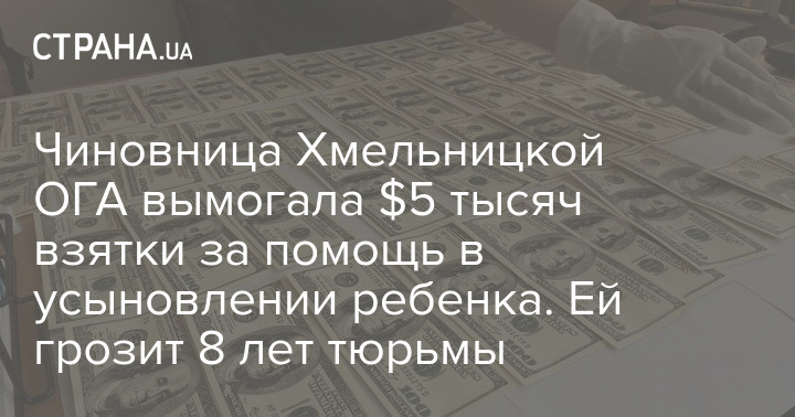 Чиновница Хмельницкой ОГА вымогала м5 тысяч взятки за помощь в усыновлении ребенка. Ей грозит 8 лет тюрьмы