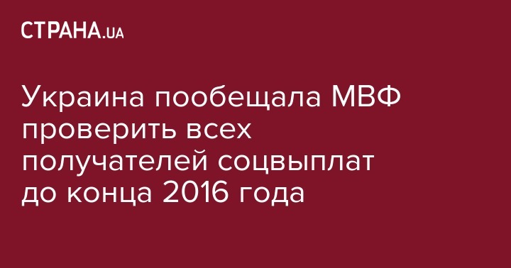 Министерство финансов Украины обязуется завершить верификацию  (проверку) получателей пенсий и социальных выплат до конца декабря 2016 года, говорится в опубликованном тексте меморандума с Международным валютным фондом, сообщает "Интерфакс".