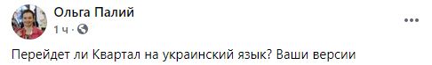 "Перейдет ли Квартал на украинский язык? Ваши версии", - задала вопрос журналистка Ольга Палий.