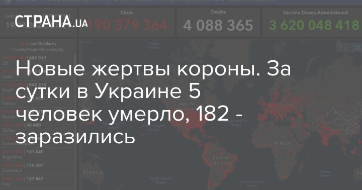 По данным на 19 июля апреля, число зараженных на Земле перевалило за 190 миллионов, фото: arcgis.com