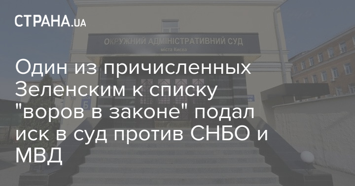 В Окружной административный суд Киева поступил иск от одного из фигурантов списка "воров в законе", составленного в мае Советом нацбезопасности и обороны Украины. Истец просит суд обязать правительство внести в СНБО предложение об исключении его фамилии из санкционного перечня.