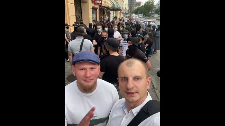 Судя по этой фразе, ролик снят, когда националисты пришли под Шестой апелляционный суд, который рассматривал жалобу белорусского оппозиционера Алексея Боленкова на решение Службы безопасности Украины о выдворении его из страны.