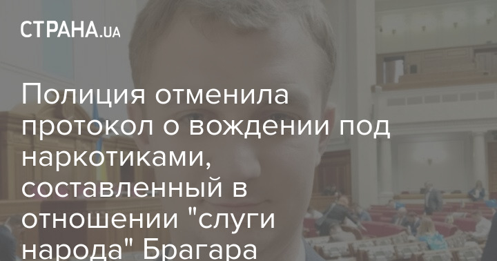 Полиция отменила протокол о вождении под наркотиками, составленный в отношении "слуги народа" Брагара