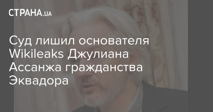 Эквадорский суд принял решение лишить гражданства Республики Эквадор основателя организации WikiLeaks Джулиана Ассанжа. Эквадорское гражданство у Ассанжа появилось еще в январе 2018 года.