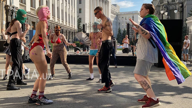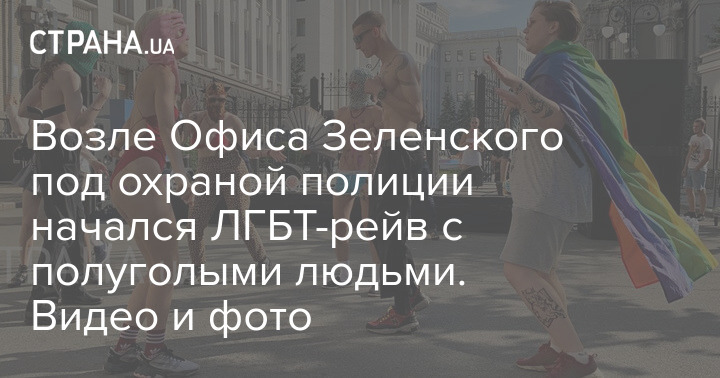 Возле Офиса Зеленского под охраной полиции начался ЛГБТ-рейв с полуголыми людьми. Видео и фото