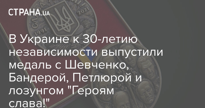 В Украине выпустили памятную медаль, посвященную 30-летию Независимости, на которой изображены Тарас Шевченко, Степан Бандера, Василий Стус, Симон Петлюра, Евгений Коновалец и Вячеслав Черновол. Также на монете отчеканен лозунг: "Слава Украине! Героям слава!"