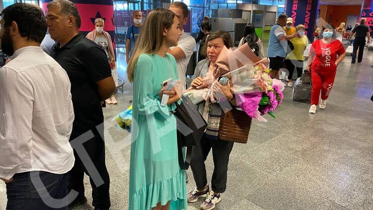Встречать олимпийского чемпиона в аэропорт приехала мать Жана Беленюка, Светлана. Однако она буквально убегает от журналистов и отказывается от любых комментариев, закрываясь от камер букетами цветов.