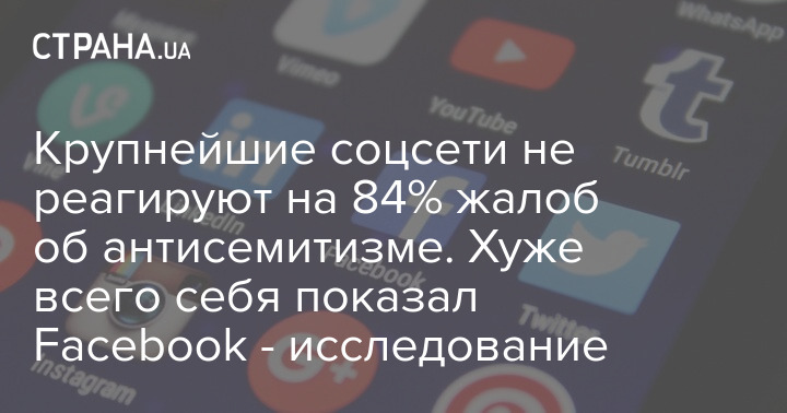Крупнейшие соцсети не реагируют на 84% жалоб об антисемитизме. Хуже всего себя показал Facebook - исследование