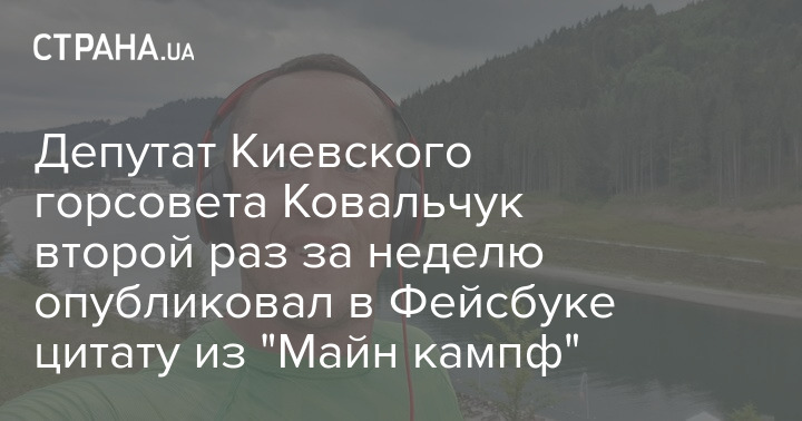 Депутат Киевского горсовета от партии "Батькивщина" Михаил Ковальчук опубликовал в своем Фейсбук-аккаунте отрывок из книги Адольфа Гитлера "Моя борьба". Это произошло уже второй раз за последние семь дней: ранее депутат цитировал фюрера 5 августа.
