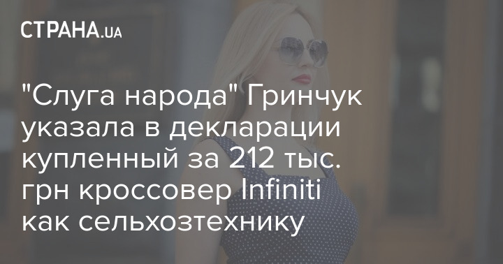 Гринчук записала новый автомобиль как сельхозтехнику. Фото: Facebook
