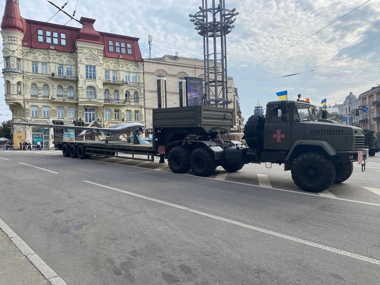 11:45 По Крещатику пошли механизированные колонны.