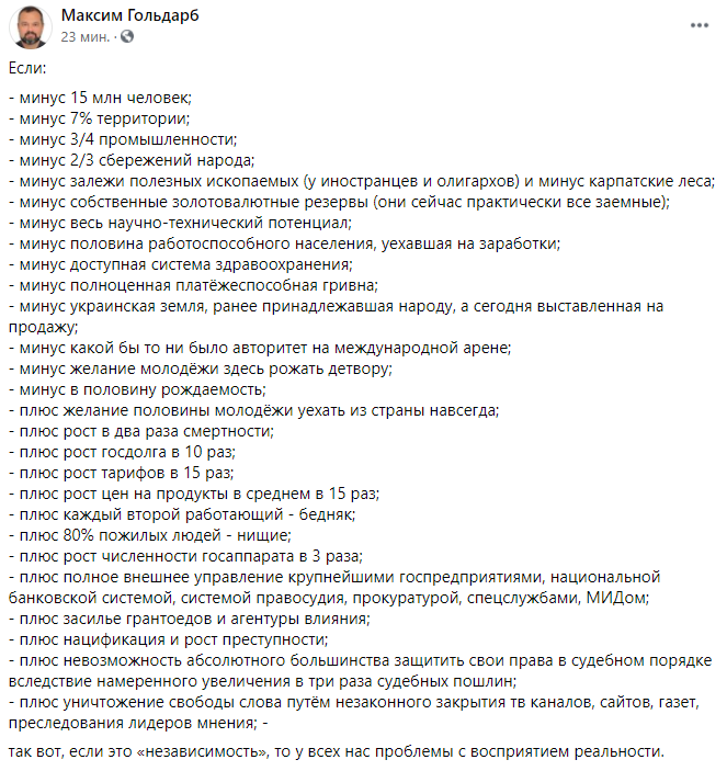 09:47 В соцсетях идут свои обсуждения Дня независимости. Телеведущий Максим Гольдарб подводит итоги 30 лет жизни страны:
