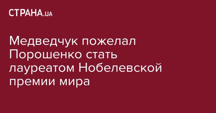 «Я искренне желаю Петру Алексеевичу Порошенко стать следующим лауреатом Нобелевской премии мира за прекращение конфликта на Востоке Украины». Так Виктор Медведчук прокомментировал присуждение Нобелевской премии мира Хуану Мануэлю Сантосу.