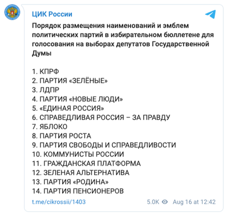 17-19 сентября в России пройдут выборы в Госдуму. На мандаты претендуют 14 партий - их ЦИК зарегистрировала и разместила в бюллетене.