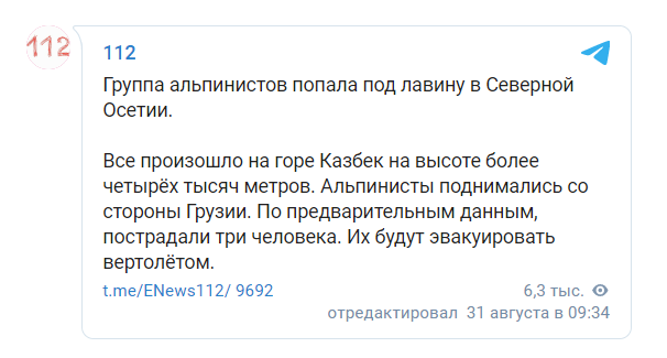 Согласно сообщению, альпинисты поднимались со стороны Грузии. Пострадавших трое человек. Их будут эвакуировать вертолетом.