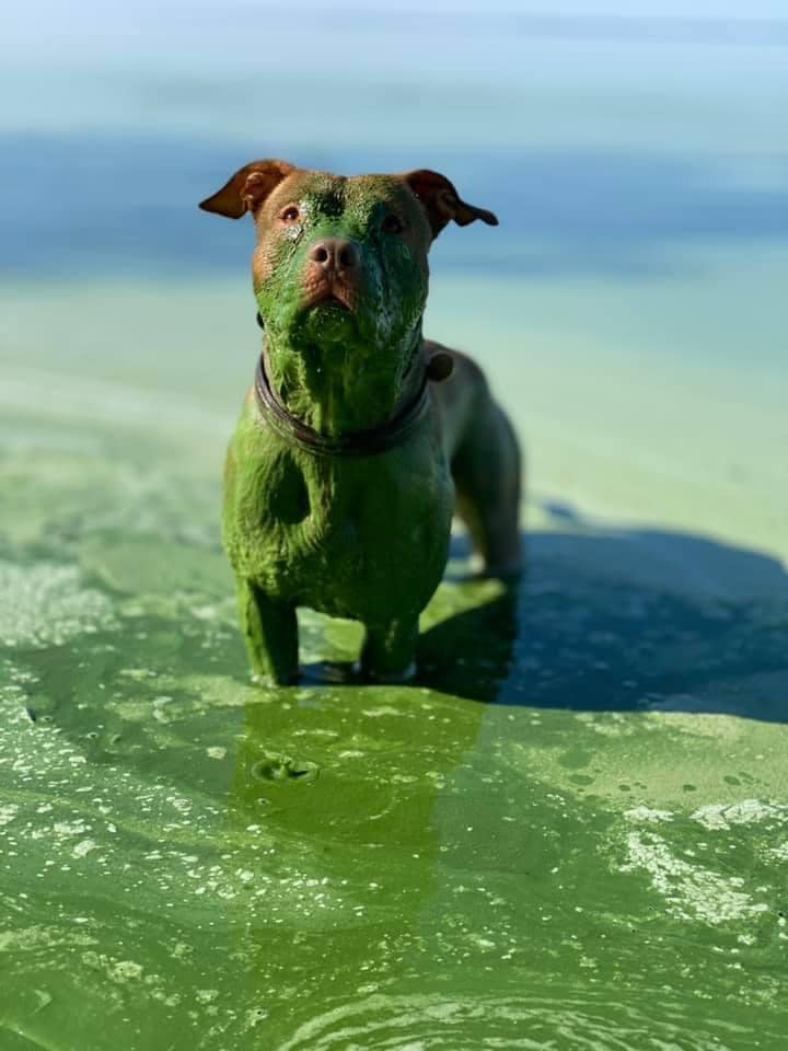 Сеть облетели фото рыжего пса, который после купания в Днепре "позеленел".