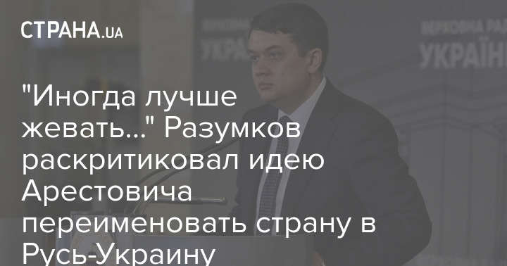 "Иногда лучше жевать..." Разумков раскритиковал идею Арестовича переименовать страну в Русь-Украину