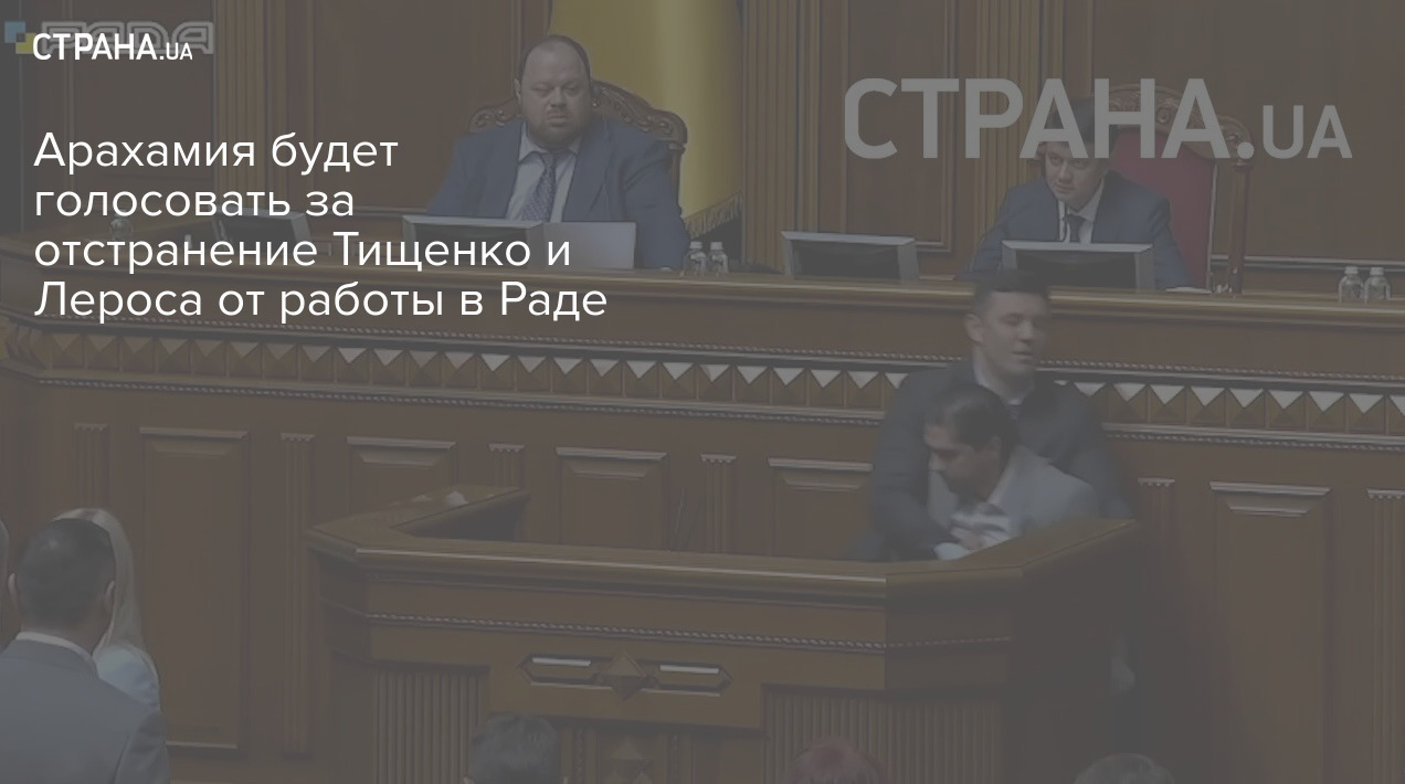 Внефракционного народного депутата Гео Лероса и нардепа от "Слуги народа" Николая Тищенко, которые устроили драку во время заседания Верховной Рады, могут отстранить от участия в пленарных заседаниях парламента. Агитировать за такое решение намерен председатель "Слуги народа" Давид Арахамия.