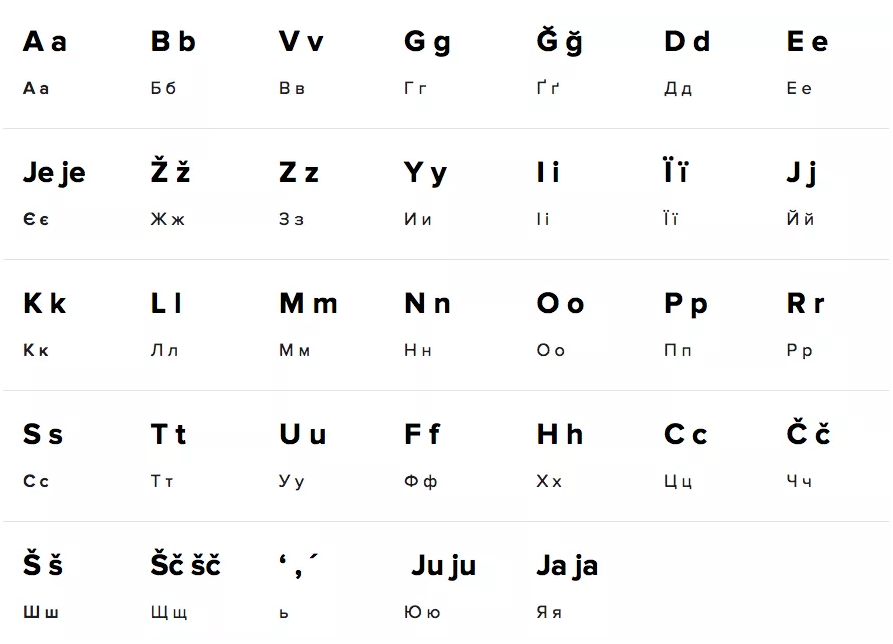 Как видим, из нынешнего алфавита предложенный унаследовал букву Ї. Остальные же литеры, которые не свойственны западно-европейским языкам - это польские буквы (например, аналоги наших "ж" и "ч").