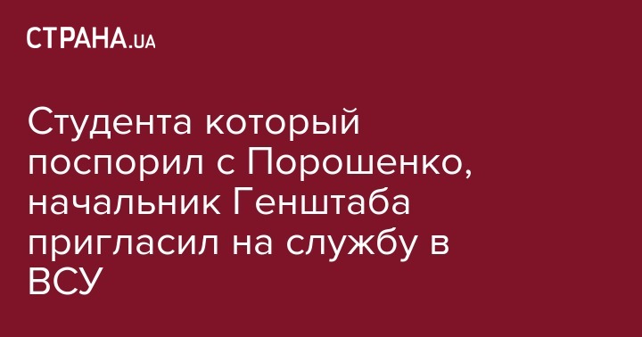 Виктор Муженко, глава Генштаба Украины заявил, что Вооруженные силы готовы принять в свои ряды студента, который вступил в спор с президентом Петром Порошенко по поводу АТО на Донбассе. Об этом он написал в своем Facebook.