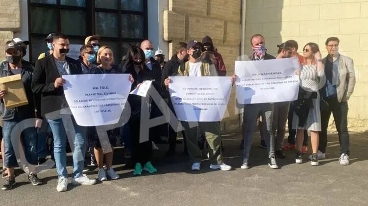 Работники заблокированных в Украине СМИ: в частности интернет-издания Страна.ua, телеканалов "Перший Незалежний", "112 Украина", "NewsOne", "Zik", и издания Шарий.net, заявили об уничтожении украинской властью свободы слова.