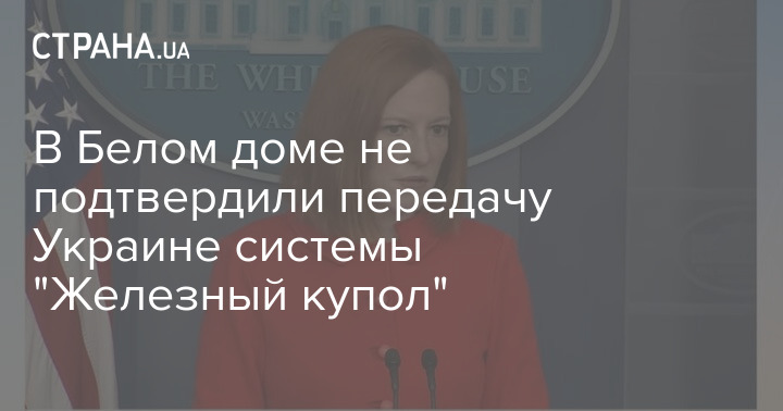 Пресс-секретарь Белого дома Джен Псаки не подтвердила информацию о поставках Украине систем противоракетной обороны "Железный купол". При этом она сослалась на нехватку информации.