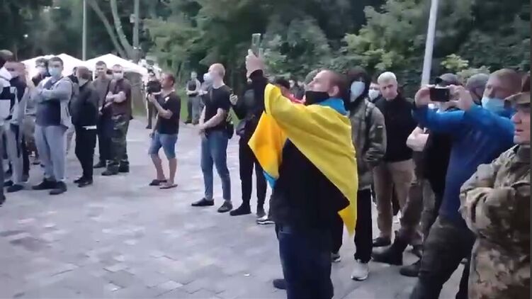 У Зеленского решили ответить на этот почин. Вчера в Днепре на встречу к Порошенко пришли парни (некоторые в камуфляже) и кричали ему «ты не гетьман, ты х@йло». По данным «Страны» собрались эти парни не просто так. Акцию организовали «слуги народа». Типа ответка.