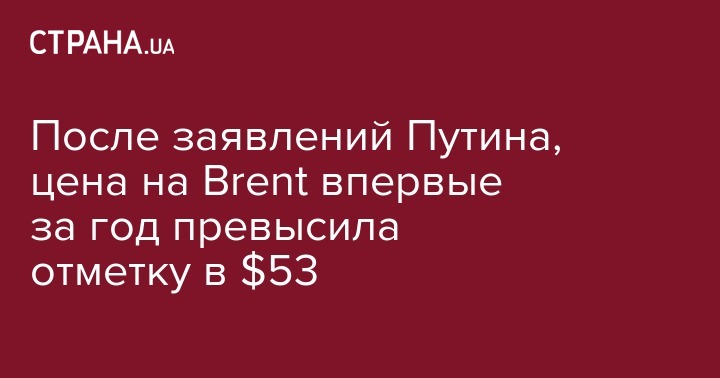 После заявлений Путина, цена на Brent впервые за год превысила отметку в $53