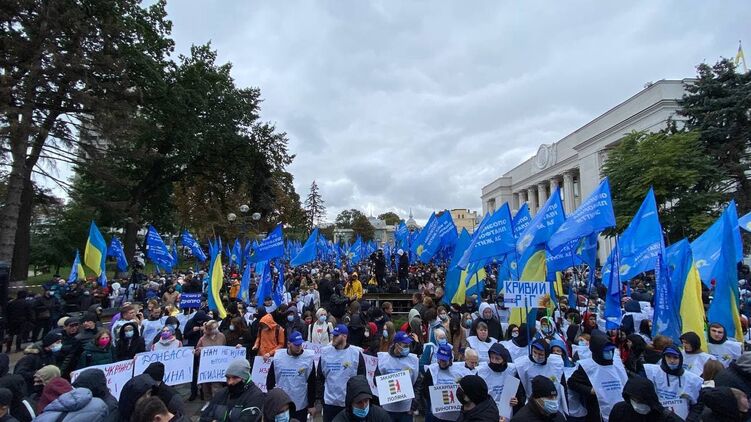 В Киеве по зданием Верховной Рады проходит масштабный митинг ОПЗЖ. Протестующие требуют от власти