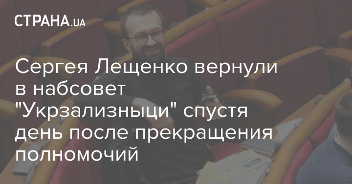 Напомним, о том, что полномочия члена наблюдательного совета АО "Укрзализныця" Сергея Лещенко прекращены из-за того, что его контракт истек, вчера сообщила пресс-служба "Укрзализныця".
