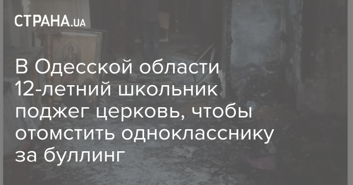 В Одесской области 12-летний школьник поджег церковь, чтобы отомстить однокласснику за буллинг