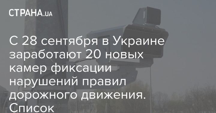 С 28 сентября в Украине заработают 20 новых камер фиксации нарушений правил дорожного движения. Список