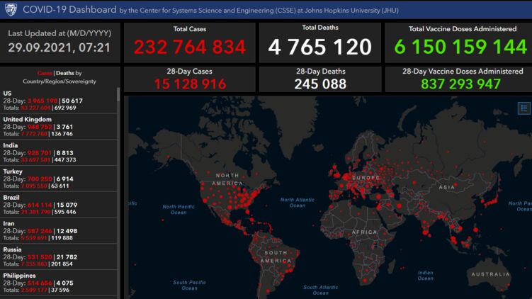 А по данным университета имени Хопкинса на утро среды на Земле уже 232 764 834 зараженных с начала пандемии.