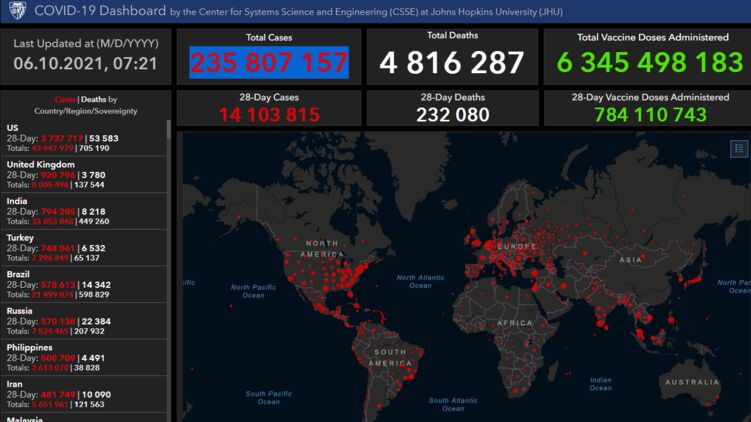 По данным авторитетного университета имени Хопкинса на утро среды (данные на 07.55 - Ред.) на Земле отмечено уже 235 807 157 зараженных с начала пандемии.