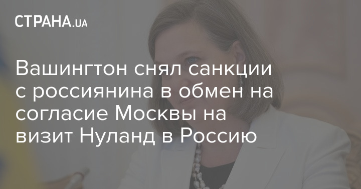 Американская сторона исключила одного россиянина из санкционного списка в обмен на аналогичный жест со стороны Москвы, которая разрешила заместителю госсекретаря США Виктории Нуланд посетить Москву.