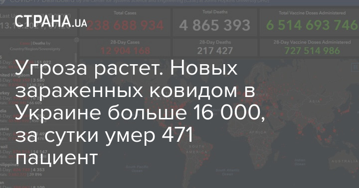 Университет Джона Хопкинса также привел новую и печальную статистику на утро 13 октября. С начала пандемии на планете уже 238 688 934 человек заразились СOVID-19. Умерли с начала пандемии - 4 865 393 человека.