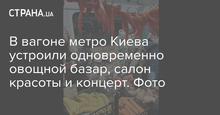 В вагоне метро Киева устроили одновременно овощной базар, салон красоты и концерт. Фото