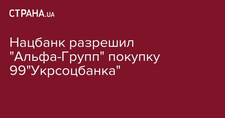 Нацбанк разрешил "Альфа-Групп" покупку 99% "Укрсоцбанка"